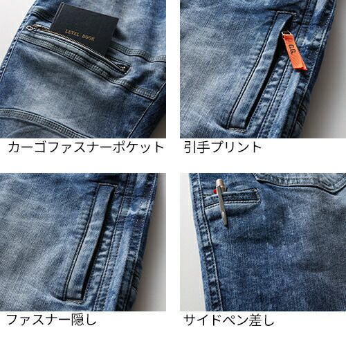最高レベルの動きやすさと形のくずれない高いキックバックの異次元パンツ ・11ozのストレッチデニムを使用・圧倒的に動きやすい最強ストレッチ・ひじ抜けが気にならない高いキックバック性・製品洗いによるソフトな風合いと防縮性
