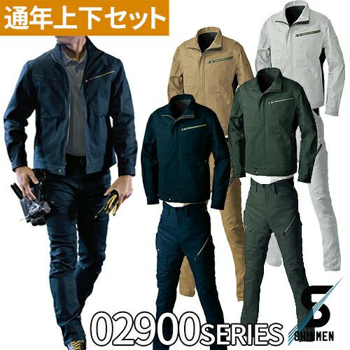 作業着 上下セット シンメン ジャケット カーゴパンツ ストレッチ 耐久性 綿 スリム 作業服 セットアップ ブルゾン おしゃれ 人気 激安 かっこいい おすすめ ジャンパー 02900 ワークパンツ 02902 作業ズボン メンズ ワーク マン 通年