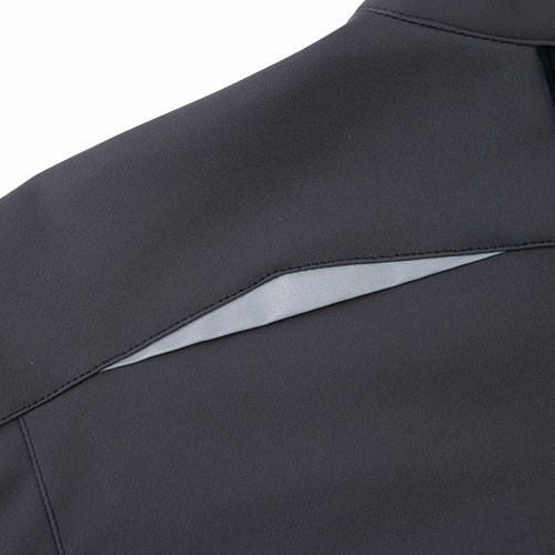 防風素材をボンディングした3層裏トリコットソフトシェルジャケット伸縮性のあるストレッチリップストップを使用。