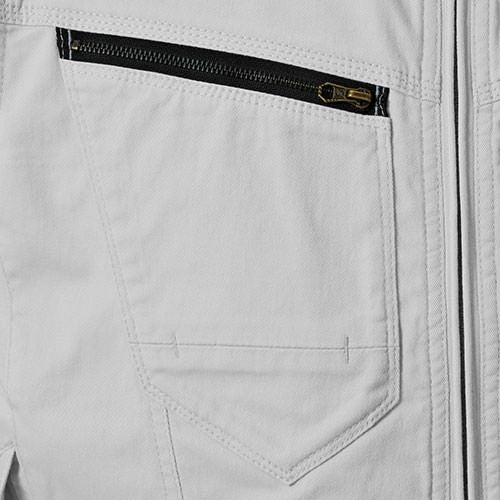 従来のワークウェアと一味違うデザイン性とストレッチ性を兼ね備えたスポーツテイストの軽量ブルゾン ・信頼の日本製軽量ストレッチダブルクロスを使用・東レライトフィックスによる軽くて伸びる快適な着心地・マスク加工(シワ加工)を施したカジュアルライクな表面感・動きやすさを追求した高いストレッチ性・制電性素材で静電気の発生を抑える・不快なニオイを軽減するデオドラントテープ付き・反射プリント・反射パイピング使いによる高視認性