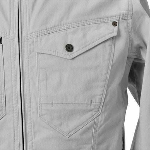 村上被服からも人気のデニム作業服が新登場! 袖部分に伸縮性に優れたジャバラを使用!!「今」のトレンドを敏感に取り入れ、仕事着と普段着の両方に使えるスタイルを提案。