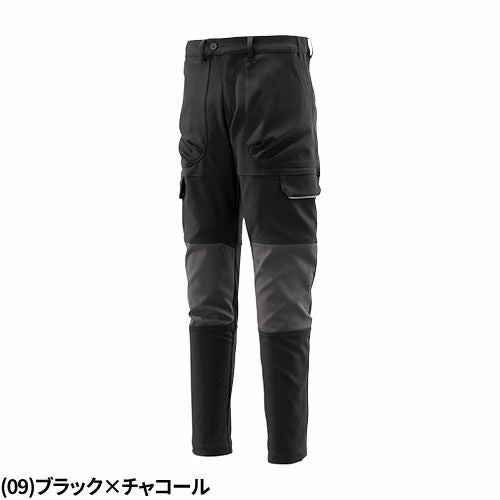 ポリエステル100%の高ストレッチ素材 細めのシルエットでもストレッチ性に優れ動きやすいワークパンツ