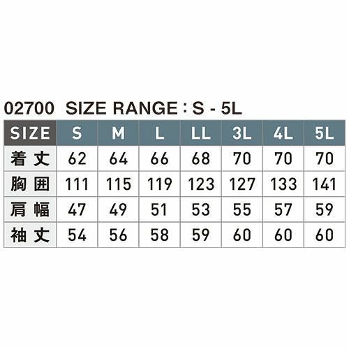 EFウェア シンメン S-AIR 綿長袖ワークブルゾン(ファン無し) 88300 作業着 作業服 春夏 電動ファン 扇風機 涼しい 快適 猛暑 酷暑 熱中症対策 作業服 工事 土木 土建 建設 運輸 輸送 工場 倉庫 農作業 スポーツ観戦 アウトドア 外作業 炎天下