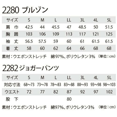 作業服 上下セットアップ ジーベック XEBEC 現場服 ストレッチ上下セット(ブルゾン 2280+ジョガーパンツ2282) 作業着 通年作業着 作業服 上下セット 上着 ジャケット ブルゾン ズボン パンツ おしゃれ 作業ズボン ワークウェア