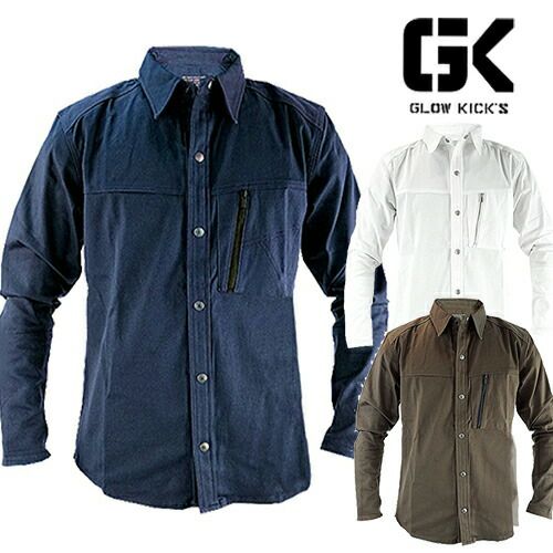 長袖シャツ 作業着 ケイゾック ストレッチ 綿 耐久性 袖ジップ おしゃれ 人気 安い かっこいい かわいい おすすめ 作業服 ワーク マン メンズ 通年 秋冬 オールシーズン 白 紺色 カーキ ワークシャツ 衿付きシャツ ワークウェア GKW-1912