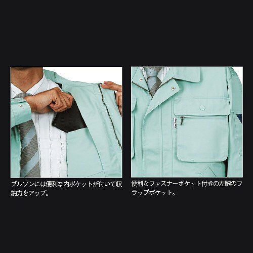 ジーベック 1344 プリーツロンミニ ドライ 長袖ブルゾン【作業服 長袖ブルゾン】春夏用 青 緑 作業服 作業着 上着 ジャケット 定番 帯電防止素材 清涼素材