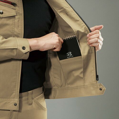 【リニューアル!!】ハードな動きに対応する快適スーパーストレッチ素材シリーズ!レッドファスナーがインパクトの進化したバートルの旗艦モデル!! ・伸縮性に優れたストレッチツイルを使用(伸長率15%)・やや細身でスタイリッシュなレイザーシルエット・男女ユニセックスシリーズ