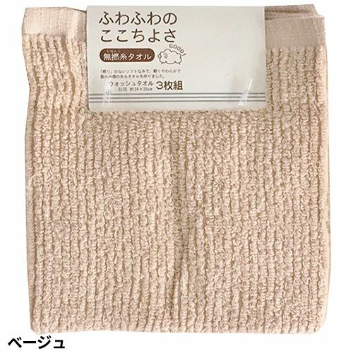 タオル ウォッシュタオル 3枚組 あぜ織りリブカラー WN601401、WN601402、WN601403、WN601404、WN601410、WN601413、WN601426、WN601428 キッチン 洗顔 掃除 普段使い 学校 保育園 こども園 幼稚園