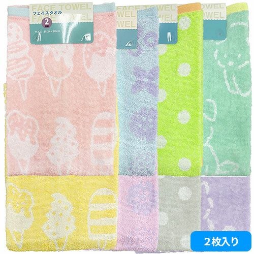 タオル フェイスタオル 2枚組 モアシリーズ FO474602、FO474603、FO474701、FO474702、FO474804、FO474829、FO474904、FO474905 コスパが良い リーズナブル キッチン トイレ 浴用 赤ちゃん 幼児 保育園 こども園 幼稚園