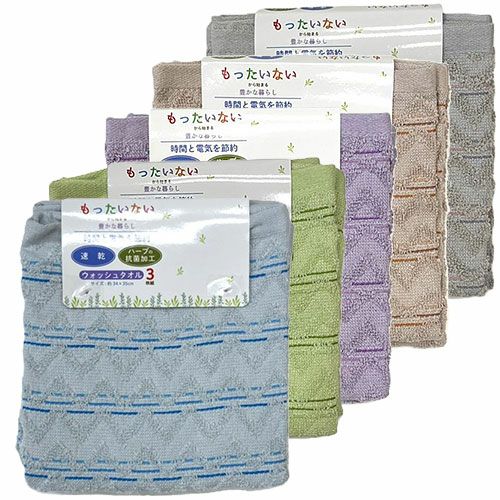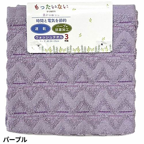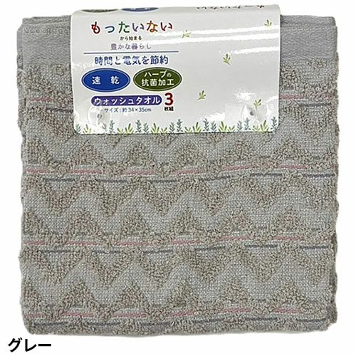 タオル ウォッシュタオル 3枚組 抗菌速乾Dヘリンボーン WO600601、WO600604、WO600605、WO600626、WO600629 キッチン 洗顔 掃除 普段使い 学校 保育園 こども園 幼稚園 抗菌 消臭 防虫 速乾 部屋干し