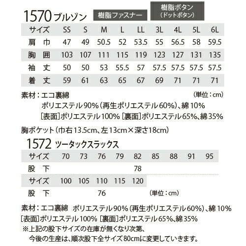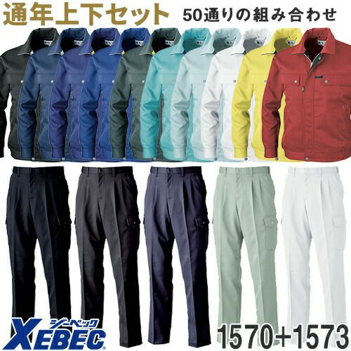 作業服 上下セット ジーベック 1570シリーズ 作業着 上下セット(1570 長袖ブルゾン+1572 スラックス) 通年 秋冬モデル 上着 ジャケット ブルゾン ズボン パンツ おしゃれ 作業ズボン ワークウェア 男女兼用