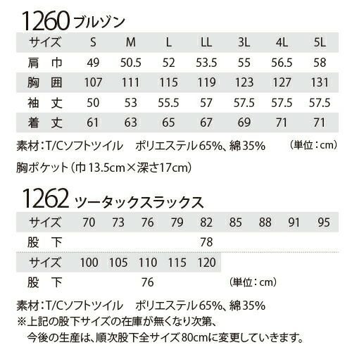 作業服 上下セット ジーベック 1260シリーズ(1260 長袖ブルゾン+1262 スラックス)ブルゾン 上着 パンツ ズボン ブルゾン 作業着 通年 秋冬 カーゴパンツ 人気 おしゃれ かっこいい ユニフォーム