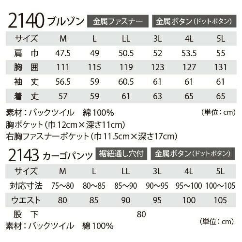 作業服 上下セット ジーベック 2140シリーズ(2140 長袖ブルゾン+2143 カーゴパンツ)作業着 ブルゾン 上着 パンツ ズボン 通年 秋冬 2140シリーズ 人気 おしゃれ 大きいサイズ 綿 カッコイイ 現場服 メンズ 綿100 M~5L