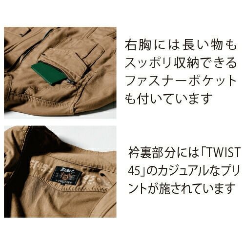 大人気ツイスト45ブルゾン(2140)&ツイスト45ラットズボン(2143)のお得な上下セット!! 現場服!動きやすく肌触り抜群!ウォッシュド加工を施した肌ざわりの良さと、こなれた風合いの綿100%素材。立体カッティングで腕や脚の曲げ伸ばしがラクラク。カジュアルな色使いとデザインも魅力的なシリーズ。
