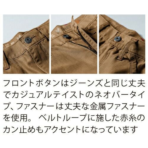 通気性に優れた伸びる素材で、快適な履き心地のカーゴパンツ ドビークロスの地模様の連続によって表現される「ドビーストライプ」適度な張りがあり、シワになりにくい軽くて通気性が良く、汗をかいてもすぐ乾く伸びる素材で静電気もおきにくい、着心地爽快なストレッチユニフォーム