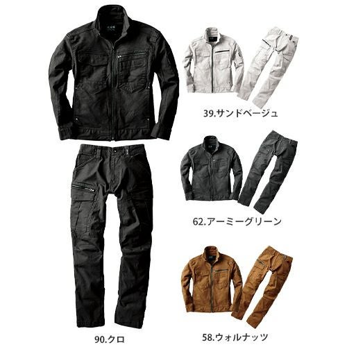 作業着 上下セット ジーベック 現場服 ジャケット カーゴパンツ ストレッチ バイウォッシュ加工 綿 作業服 セットアップ ブルゾン おしゃれ 人気 激安 かっこいい おすすめ ジャンパー ワークパンツ 作業ズボン メンズ 通年 秋冬 2170 2173