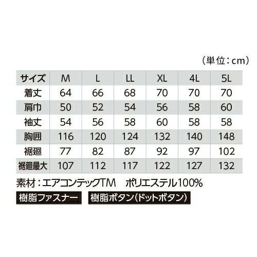 空調服 長袖ブルゾン(ファン無し・男女兼用) AZ-1799 AITOZ アイトス 作業着 作業服 春夏 涼しい 快適 猛暑対策 熱中症対策 上着 ジャケット 長袖 扇風機 作業服 工事 土木 土建 建設 外作業 炎天下 春夏 メンズ 男性用 涼しい 清涼感