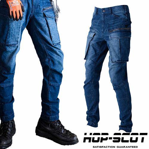 作業服 デニム CUC 中国産業 HOP-SCOT フレックステック 3DデニムJOBカーゴパンツ 8.1oz 760005 作業着 通年 秋冬 シンプル カジュアル ストリートテイスト ミリタリー 児島 おしゃれ カッコいい タウンユース 普段使い アウトドア