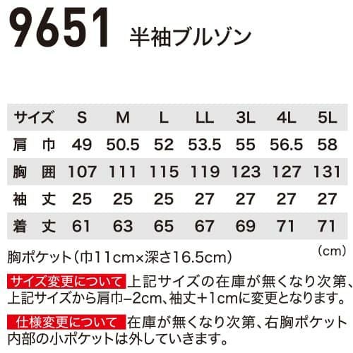 ジーベック 9651 クールボディー 半袖ブルゾン【作業服 半袖ブルゾン】夏用(春夏) 青 緑 作業服 作業着 春夏 上着 ジャケット 定番 清涼素材 防縮防シワ加工