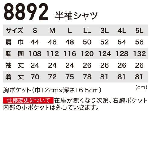 ジーベック 8892 半袖シャツ 作業服 半袖シャツ 夏用(春夏 S~6L) 作業服 作業着 春夏 かっこいい おしゃれ 高品質