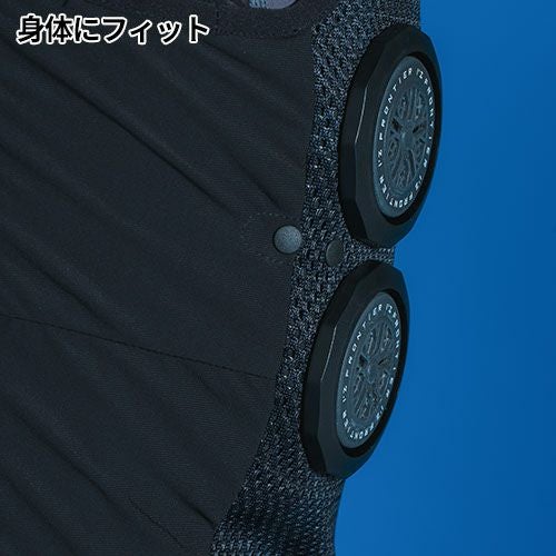 それは例えるなら氷を纏う。テクノロジーの進化が行きつく新たなる可能性。猛暑でのワーカーを守るニュータイプアイシングギアがさらなる進化を遂げる。 ニュータイプ冷却ウェアとして市場に定着したペルチェデバイス装着可能インナーベストが更なる進化をとげ新登場。後ろ襟首と背面両脇の計6か所に直径5cmのペルチェデバイスが装着可能。