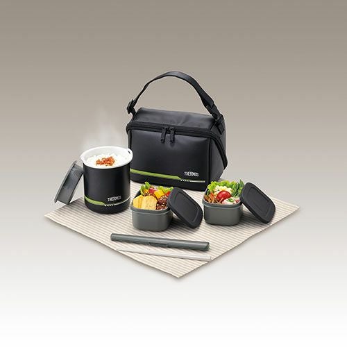 つくりたてのおいしさと温かさがいっぱいつまった愛情お弁当 あたたかいごはんを魔法びんで保温、いたみやすいおかずは常温のままセットで持ち運べる、お弁当箱です。コンパクト設計の保温ケースによってお弁当箱サイズを実現しました。各容器・フタ・ハシ・ハシケースは食洗機対応です。