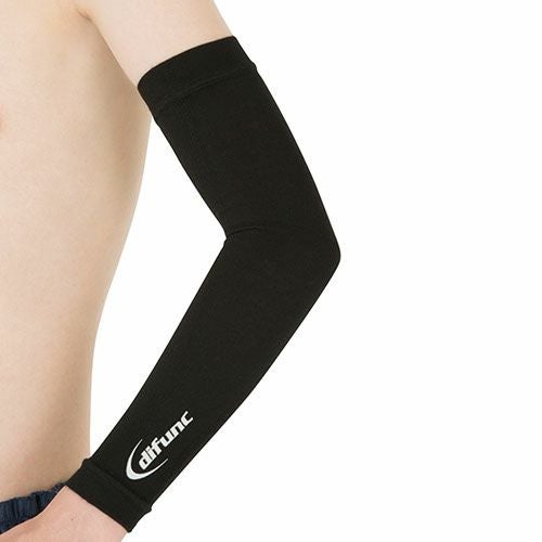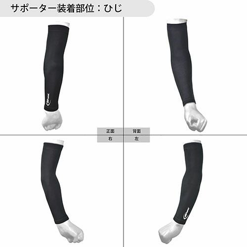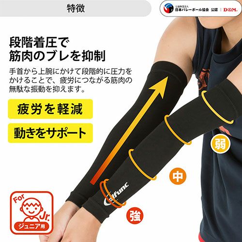 段階的な着圧で関節や筋肉をちゃんとアシスト スポーツテーピング理論で的確に動きをアシストし、アクティブな場面におすすめ!ひじ頭部分は弱圧迫で曲げ伸ばしやすくなっています。