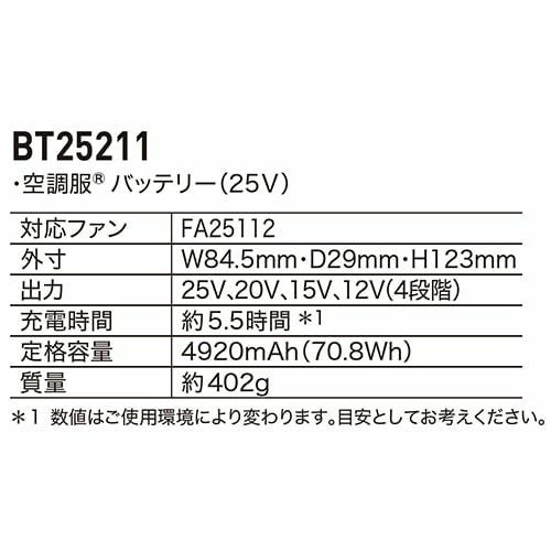 EFウェア バッテリー ジーベック XEBEC 空調服(R) 25Vバッテリー単体 2025年モデル BT25211 作業着 作業服 春夏EFウェア バッテリー