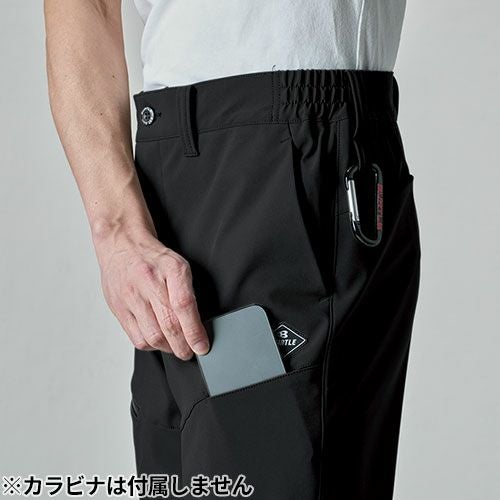 気候の変化に対応した機能素材採用のシリーズディテールにこだわり完成度を高めた機能性及びデザイン性 太もも部分やウエスト部分がゆったりとしていて裾にかけて細くなっているシルエットです。 細身でありながらも太ももまわりにはゆとりがあり、パターン設計上、動きに対して生地が引っ張らず履きやすいため、自分にあったサイズを選べば着用感抜群のストレスフリーなパンツです