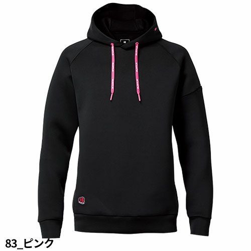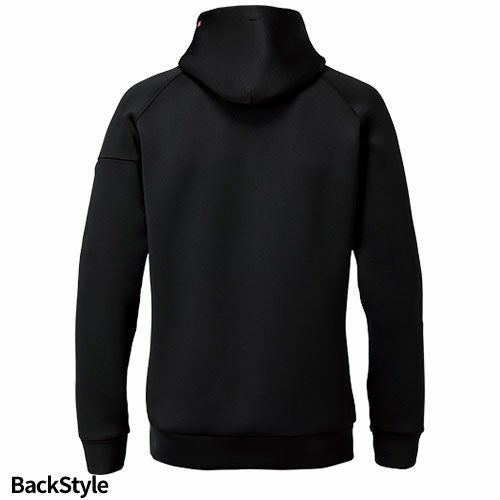 ワークからディリーシーンまで幅広いシチュエーションで活躍する保温性やストレッチ性に優れたプルオーバーフーディ ・ストレッチ性と保温性に優れた段ボール断面構造のダブルニット素材・男女ユニセックスの着用に対応
