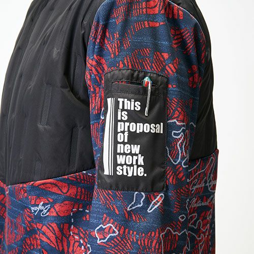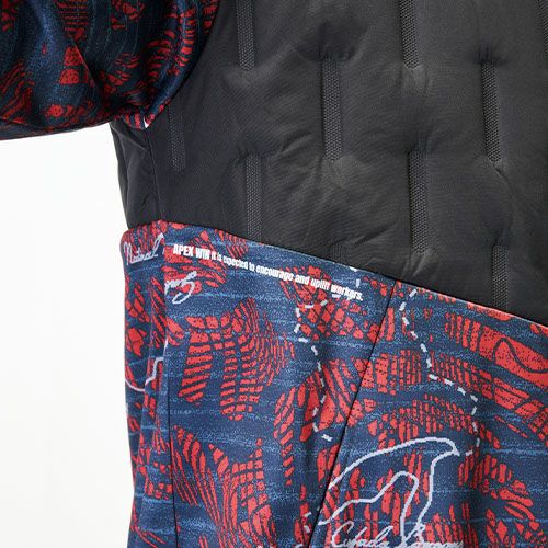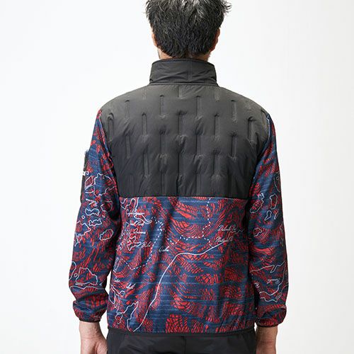 ストレッチ素材のニットと切り替えることで機動力を高めたアクティブ仕様 中綿を挟み込んだ防風の三層生地を採用した機能的かつスタイリッシュな防風ピンソニックシリーズ。