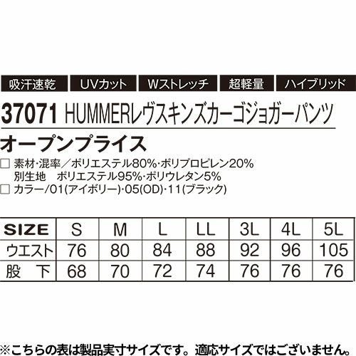 作業服 カーゴパンツ HUMMER ハマー レヴスキンズカーゴジョガーパンツ 37071 作業着 通年 秋冬 レヴスキンズ 吸汗速乾 保温 軽量 動きやすい 暖かい 肌触りが良い ストレッチ シンプル おしゃれ カッコいい