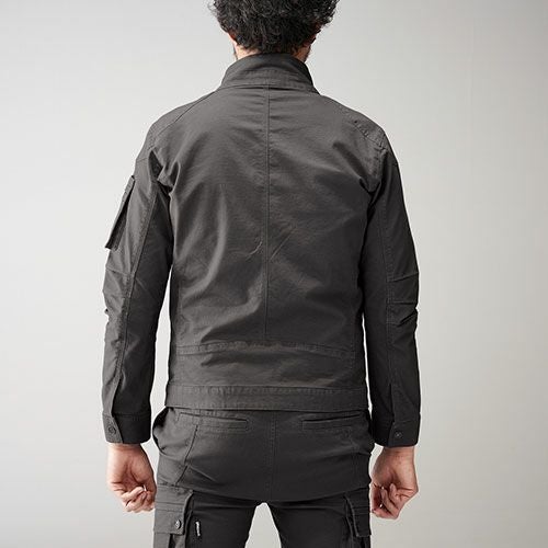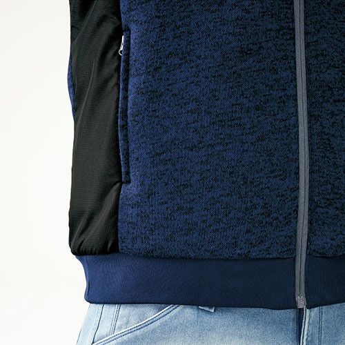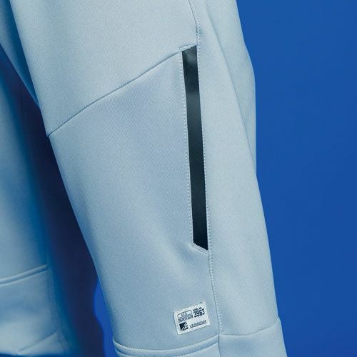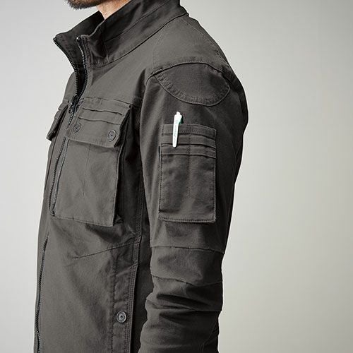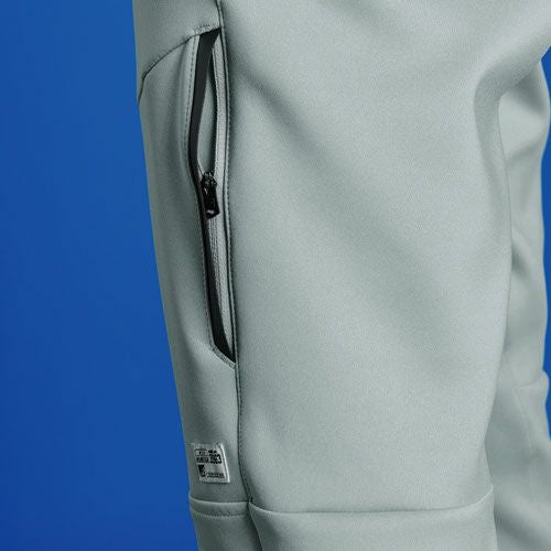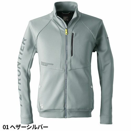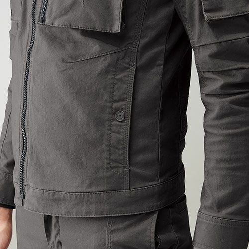 進化する世界に呼応するフロンティアスピリット。アスリートワークモデルI`ZSPORTS始動。 ・快適性の高いニット素材の特性はそのままにハイレベルなストレッチ性とキックバック性をプラス(測定値:伸長率タテ約24%・ヨコ約36%伸長回復率・1時間後約96%)。布帛素材では成し得ないニット素材特有の解放感あふれる着心地を実現します。・細番手の糸を限界まで打ち込んだハイゲージ素材は、抗ピリング性能5級、抗スナッグ性能5級、破裂強さ1030kpaを誇る、ニット素材の中では屈強の生地強度も合わせ持ちます(ジャケットとして問題のない破裂強さの数値は400kpa)。・絶妙な二浴染めにより、洗練された上質な色合いを表現。その他の素材とは一線を画す高級感溢れる仕上がりです。・アスリートマインドを刺激する洗練された近未来系スポーツテイストモデル。ワークウェアに新たな概念をもたらします。・3Dラバープリントやレタリングプリントを施した隙の無いデコレーションが、更なる高級感アップを実現します。・ロゴプリントファスナーや国産YKK社製ドット釦等、細部にまで拘りを追求しています。