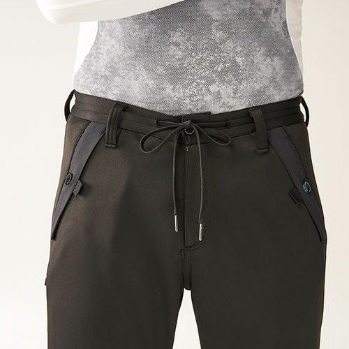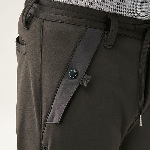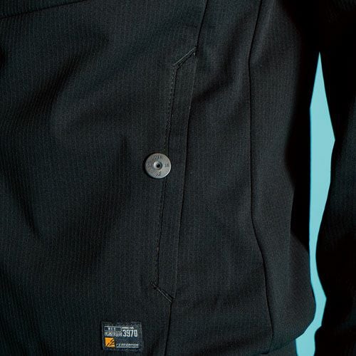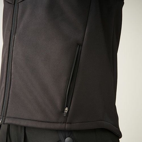 耐水圧 100000mm、透湿 3000g/m2・24h 3層ボンディング加工によるストレッチ防風セットアップ 防風素材を使用することにより外気の寒さを跳ね返し内側は熱を保つハードワーク向き性能を実現
