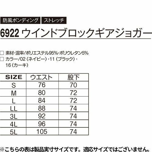 作業服 パンツ スラックス アタックベース ATACK BASE ウインドブロックギアジョガー 6922 作業着 通年 秋冬 防風 保温 ストレッチ 耐水 透湿 暖かい シンプル カッコいい おしゃれ