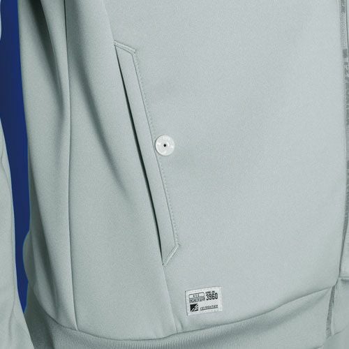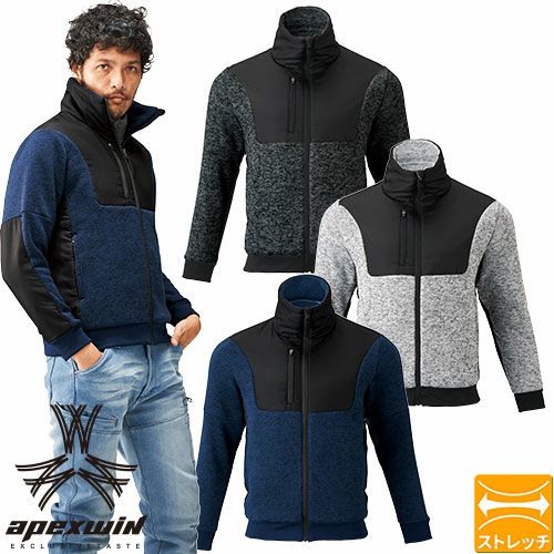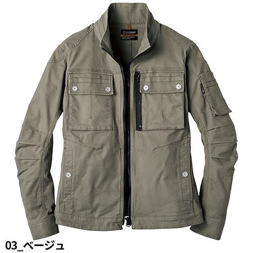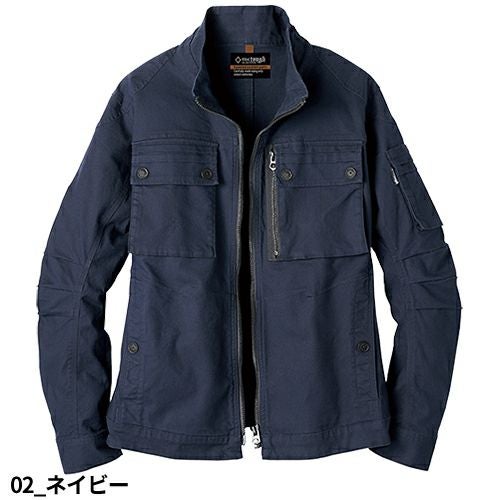 進化する世界に呼応するフロンティアスピリット。アスリートワークモデルI`ZSPORTS始動。 ・しなやかなクリンプ形成による特殊構造加工糸T400を効果的に編み込みポリウレタンにない耐久性を発揮。伸長率タテ約19%・ヨコ約25%、伸長回復率(1時間後)約95%の快適な全方向ストレッチ性能を有し、ストレスのない動き易さ、ハリコシ感のある快適な着心地、安定感のあるスタイリッシュなスタイルキープをそれぞれ実現します。・ニット素材特有の動きやすさに加え、抗ピリング性能4.5級、抗スナッグ性能5級、破裂強さ800kpaを誇る、ニット素材の中では屈強の生地強度も合わせ持ちます(ジャケットとして問題のない破裂強さの数値は400kpa)。・バックワッフル素材特有の凹凸構造により、着用後空気を包み込み幾ばくかの温かさが生まれると共に、気品溢れるシャープなルックスを実現します。・アスリートマインドを刺激する洗練された近未来系スポーツテイストモデル。ワークウェアに新たな概念をもたらします。・計算しつくされたロゴプリントに加え、プラスチック&金属製のファスナーやドット釦等に国産YKK社製を使用する等、細部にまで拘りを追求しています。