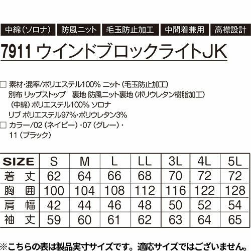 作業服 ブルゾン アタックベース ウインドブロックライトジャケット 7911 作業着 ジャンパー 防寒 防風 保温 ストレッチ 耐水 透湿 暖かい 通年 秋冬 高襟 シンプル おしゃれ かっこいい 人気 ワーク企業 法人 作業 工場 外作業 大きいサイズ 3L 4L 5L ユニフォーム 黒