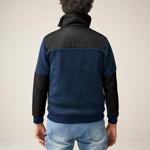 高機能綿ソロナを活用した高襟設計の防風中綿ジャケット ニット素材を使用し動きやすさを追求。極寒気温下でのインサレーションとしても。