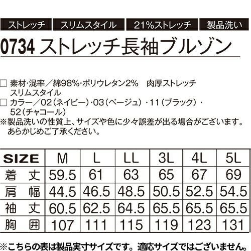 作業服 ブルゾン アタックベース ストレッチ長袖ブルゾン 0734 作業着 ジャンパー ストレッチ 通年 秋冬 スリム スタイル 生地が分厚い シンプル おしゃれ かっこいい 人気 ワーク企業 法人 作業 工場 外作業 大きいサイズ 3L 4L 5L ユニフォーム 黒 上下セット対応