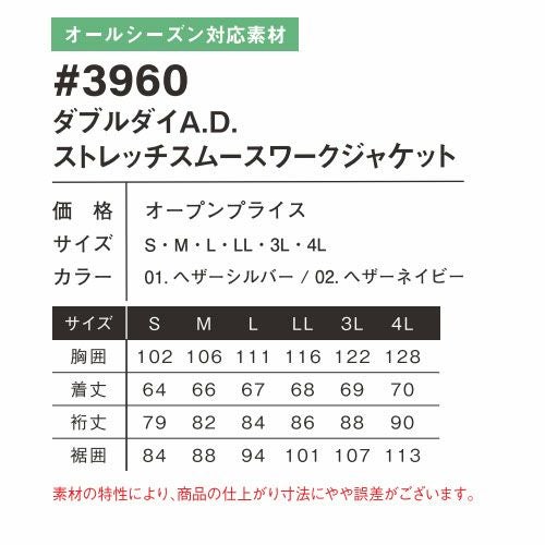 作業服 ジャンパー アイズフロンティア I'Z FRONTIER スムースワークジャケット #3960 作業着 通年 秋冬作業着 作業服 ジャンパー