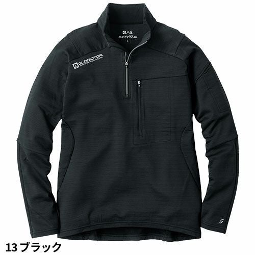 ワークシーンにとどまらないそのラグジュアリーなテイストが様々なシーンをリッチに演出。ユーティリティーウエアの概念を超えろ!! ・厳選された糸特性により絶妙なピーチタッチを実現した裏起毛素材。適度な保温性と快適な着心地を実現。気になる臭いを軽減する抗菌防臭加工や、不快な静電気を軽減する導電糸を用いた縫製等、更なる快適感を追求しています。・伸長率タテ約37%・ヨコ約88%、伸長回復率(1時間後)タテ約91%・ヨコ約95%を誇る驚愕のストレッチ性能を発揮。型崩れが少なく寸法安定性にも優れています。・優しい風合いも、破裂強度(503kPa)、抗ピリング性能(4.5級)、抗スナッグ性能(4.5級)等ハイレベルな強度を併せ持つ完成度の高い1着に仕上がっています。・ポップな世界観を遺憾なく発揮したスポーツモデル#9101モックネックシャツと、首元をソフトに包むラグジュアリー感MAXの#9108アフガンネックの、異なる個性の2モデルをラインナップ。・高級感を高める胸元のメタル調HOTFIXや背面光沢ラバープリント、シームテープ仕様袖ポケットなど、細部にまで拘りを追求した高いデザイン性も大きな魅力。