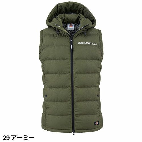 作業服 ダウン 作業着 ディッキーズ Dickies D-23009 ワッシャーファイバーダウン フーディーベスト 防寒 保温 反射材付き 袖なし 通年 秋冬 人気 定番 上着 おしゃれ かっこいい シンプル ワーク 作業 工場 外作業 仕事 土木 工事 現場 大きいサイズ XL XXL 黒 緑 カーキ