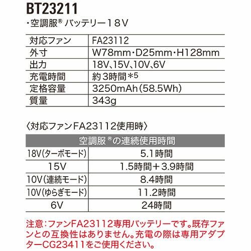 EFウェア バッテリー 空調服 空調服 18Vバッテリー単品 2023年モデル BT23211 作業着 作業服 春夏EFウェア バッテリー