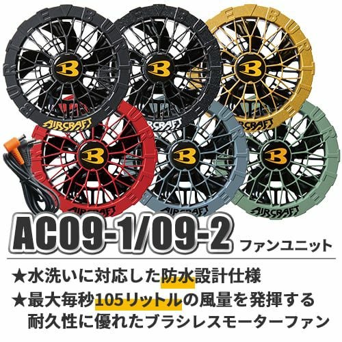 【即日出荷】バートル 空調作業服 2025 ファンセット エアークラフト 最新 新作 作業着 ファン 防水 EFウェア AC09-1 AC09-2 BURTLE AIRCRAFT 105L 水洗い可能ファン 作業服 春夏 猛暑 暑さ対策 強力 2025モデル かっこいい 熱中症対策 洗えるファン