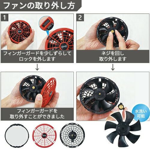最大毎秒105リットルの風量を発揮する耐久性に優れたブラシレスモーターファン水洗いに対応した防水設計仕様 水洗いに対応した防水設計仕様にアップデートされたファン最大毎秒105リットルの風量を発揮する耐久性に優れたブラシレスモーターファン