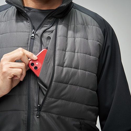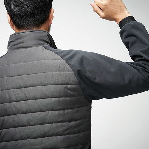 コンパクトにまとめて持ち運びできるポケッタブル仕様の中綿入りインサレーションジャケット腕部の二重構造と胴部の防風加工が冷風を遮り冷えを防ぐ