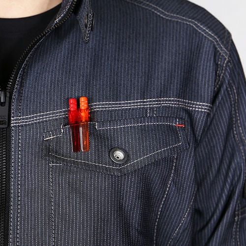 スタイリッシュなピンストライプでシャープ&カジュアルな印象にヴィィンテージの雰囲気も醸し出しながらワークディテールも充実したスタイル