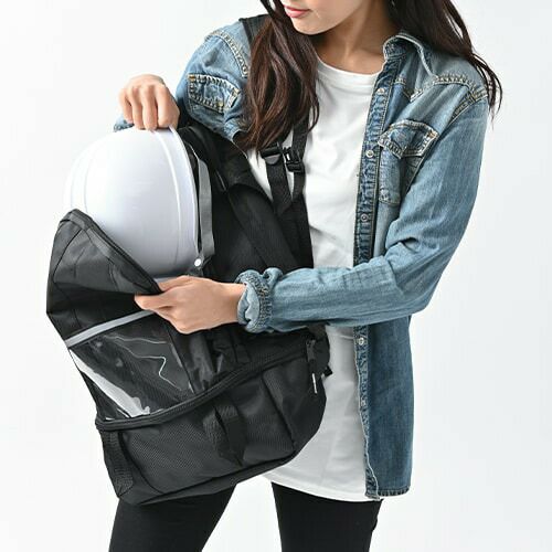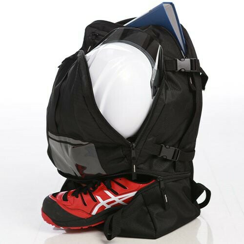現場のお供に 現場への出勤。ヘルメットに安全靴に…。汚れたものは分けたい、けれど荷物は少なくしたい!そんな時、こんな便利なバッグはいかがですか?