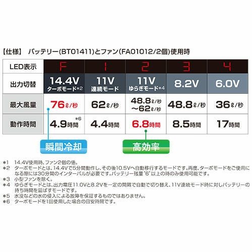 最大風速76L/秒!さらなる高効率・高寿命・薄型・軽量を実現したファン14.4Vターボモード搭載バッテリー