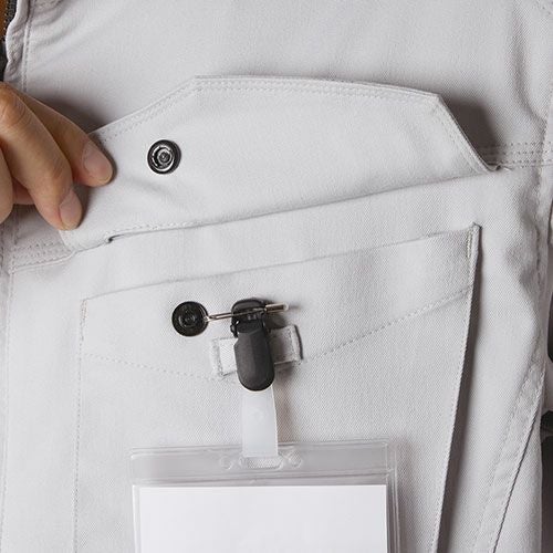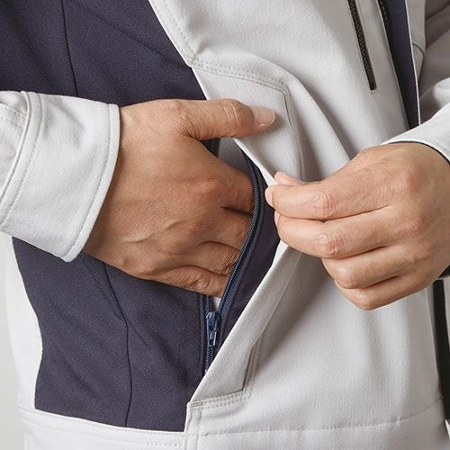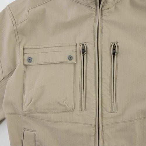2WAYストレッチスラブツイル現場服スラブ糸使いでカジュアル感のある素材と肉厚で丈夫な生地感はハードな現場に最適です。さらにマチ付きの大型カーゴポケットは収納力抜群でスムーズな作業をサポートします。 ●2WAYストレッチで動きやすい●襟リブ素材で快適な着心地●両胸にはモノが落ちにくいファスナーポケット